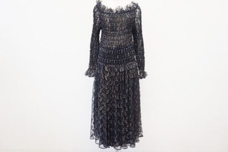 ChristianDior Boutiqueクリスチャンディオールのブラックワンピースを出張買取にて買取いたしました。エレガンスな雰囲気が人気のディオールです。今回のお洋服もお人形のお洋服のようなチュールやレースをふんだんに使用したヴィンテージの華やかドレス。袖周りや首回りもとても華やかでネックレスや指輪を付けたらよりアイテムを引き立たせるデザインですね。