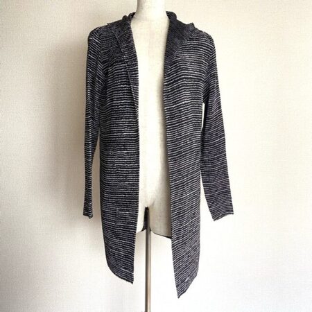 千葉県60代のお客様よりスペッチオのカーディガンを買取しました。フード付きです。モノトーンできりっとした雰囲気を演出していただけます。ロング丈ですのでパンツでもスカートでもお好みのファッションに取り入れることが可能!