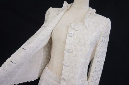 レース素材によるエレガントなスタイルがおしゃれな銀座マギーのスーツを買取させていただきました。