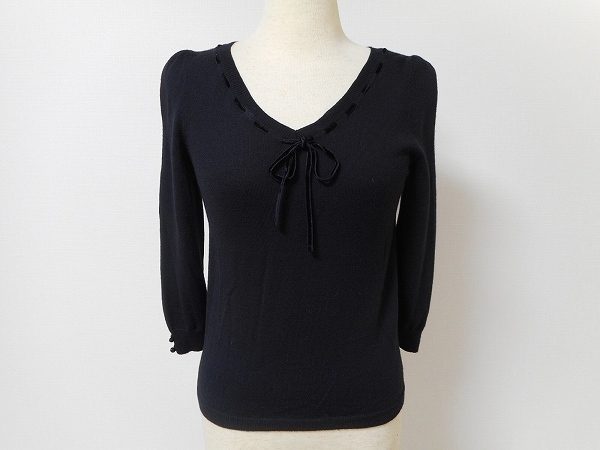 これぞシックの極みのブラックニット。組曲のエレガントなリボンニットを買取しました