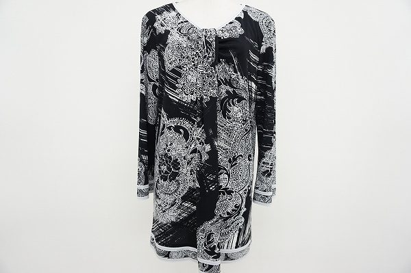 シックなパリジェンヌテイストが魅力、レオナールのモノトーンフラワープリントチュニックをお売りいただきました。