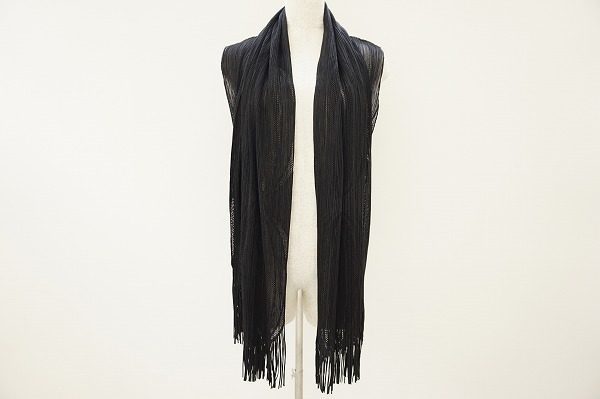 今回、入荷したジレがこちらです。もちろん、ストールのように見える部分もジレの一部です。かなり奇抜なデザインとなっています。