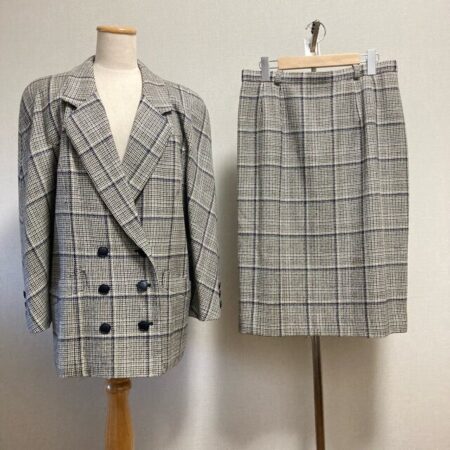 レリアンのセットアップを買取しました。出張買取にてご依頼いただいた方の美品です。チェックとダブルタイプのデザインでカジュアルさもありますが、女性の品の良さを引き出してくれる素晴らしいセットアップ。