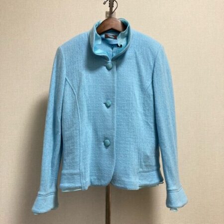銀座マギーのアンサンブルを買取しました。ご利用方法は出張買取です。鮮やかではありますが嫌味もない綺麗さが整っているブルー。ボタンもあるのできっちり感が出ていいですね。