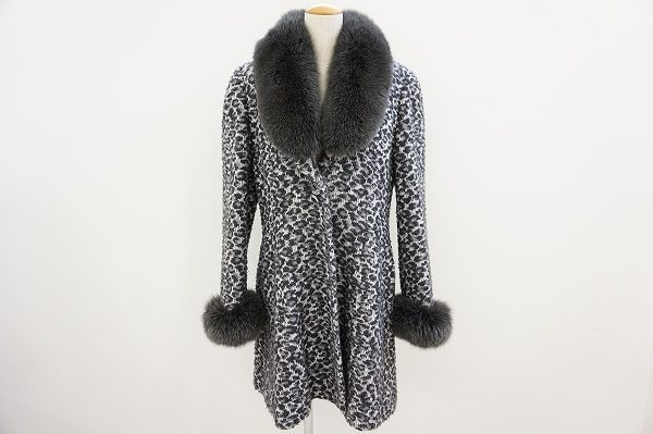 上品なデザインのアイテムに定評のあるこのブランドですが、今回ご紹介するコートもゴージャスなフォックスファーをふんだんに使用しながらひかえめでシックな色使いです。だからアニマル柄も至極上品に決まります。