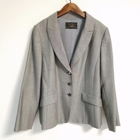 レリアンのジャケットを出張買取ご利用のお客様より買取しました。グレーが効いていてスマートな印象を作り出してくれます。シルク混ならではの艶っぽさも感じられてピリッと仕上げたい時にも活用できるジャケットです。