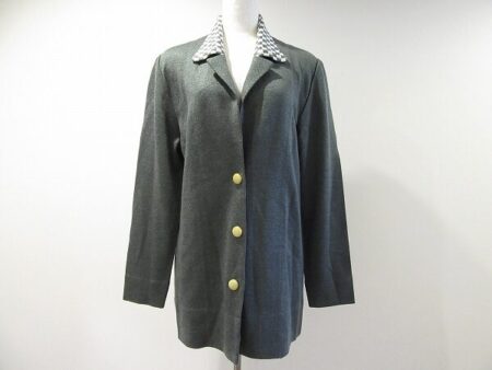 チャーミングな絵柄、可愛らしい雰囲気が特長の斉藤都世子のお洋服。今回はちょっぴりシックなジャケットをお譲りいただきました。出張買取ご利用のお客様より買取したお品です。襟のブロックチェックがスタイリッシュに仕上げてくれるジャケット。黒よりも強すぎないグレーでどこか優しい印象にしてくれます。タイトスカートやすっきりデザインのパンツと合わせるとよりスタイリッシュに仕上げてくれます。