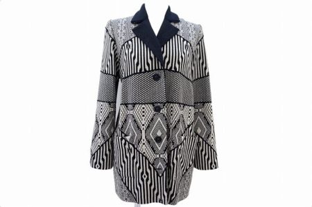 斉藤都世子のニットジャケットを出張買取にて買取しました。どこか目を惹く上品かつ印象的な柄で遊び心のあるニットジャケットです。ブラックの存在感抜群な襟がしっかりした雰囲気と同時に引き締まった印象にしてくれます。どんなカラーのボトムスも持ってきやすいのが嬉しいですね。