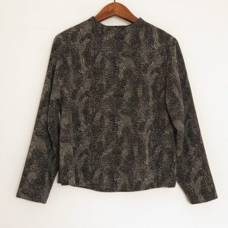 ちりめん素材で作られたお洋服が話題の詩仙堂のカットソーを買取しました。黒とベージュの独特の存在感があります。和のよさを出した落ち着きがありつつも豪華な雰囲気がいいですね。