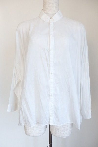 今回ご紹介させていただくのは、ノーコントロールエアーのシンプルなブラウスです。至ってシンプルではあるのですが、ドルマンスリーブになっているので、女性らしい雰囲気も感じることができます。シンプルだからこそ、その物自体の良し悪しも目につきやすくなってきますが、こちらのシャツは素材選びから縫製、装飾の全てにおいて一切の妥協をしていないので、高級感さえも感じられます。