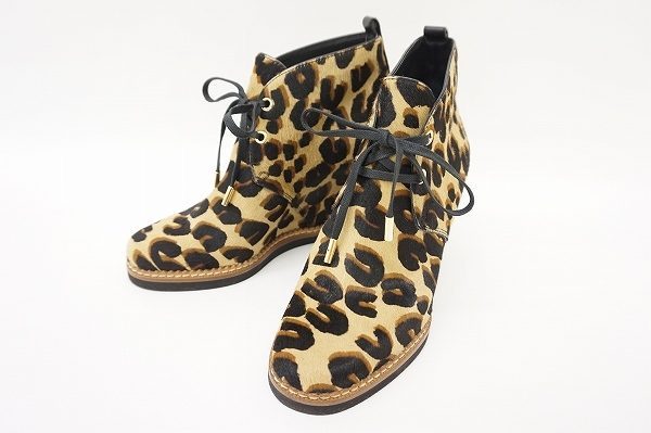 メインの素材に使われるのは高価なハラコレザーです。そこに描かれるレオパード柄は、グラフィティラインをデザインした有名なアーティスト、スティーブン・スプラウスによってデザインされた柄です。