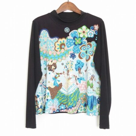トクコのカットソーを出張買取ご利用のお客様より買取しました。爽やかな水色、女性を楽しませてくれる賑やかで綺麗めな柄がおしゃれを楽しくさせてくれます。黒部分もあって、程よくシャープにしてくれるのもいいですね。