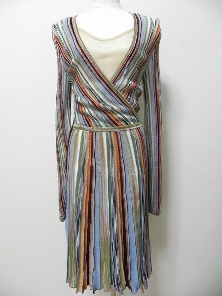 幾何学模様を武器としてファッションシーンに地位を築くミッソーニですが、こちらのワンピースは同ブランドとしてはシンプルなストライプがメインになっています。