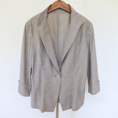 出張買取でレリアンのジャケットを買取しました。サイズは11です。穏やかな雰囲気を感じるジャケット。ベージュ1色ですが地味になり過ぎずスッキリ着ていただけます。麻素材で自然体なのも嬉しいですね。