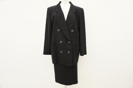 かっちりとしたシルエットとダブルジャケットの気品が感じられるスカートスーツを買い取り査定させていただきました。