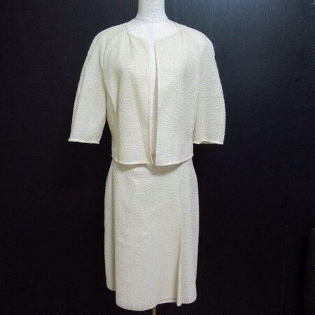 出張買取ご利用のお客様よりアクリスのスカートスーツを買取しました。キュートな風合いのデザイン、合わせやすいベージュが嬉しいスカートスーツ。女性ならではの清潔感を出せる1点です。