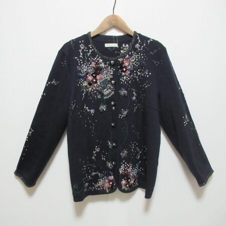 出張買取にてアトリエサガンのカーディガンを買取しました。サイズはLです。刺繍とビーズのきらめきがたまらない1点。黒ではありますが、圧をかけすぎず上品綺麗にしてくれます。