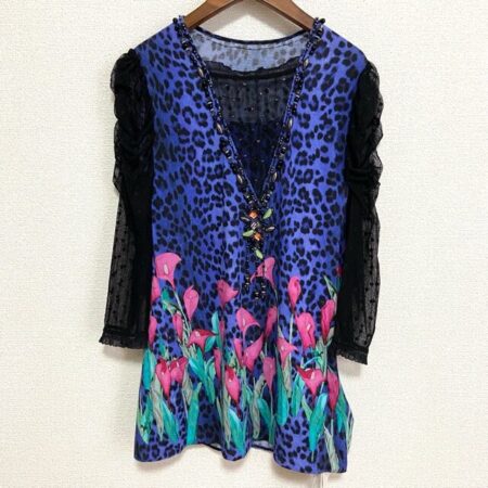 伊太利屋のチュニックを買取しました。アニマル柄の強さ、お花柄の可愛らしさの融合が素敵な1着。タイトなレギンスを合わせればワンピースのような綺麗めコーディネートも期待できます。