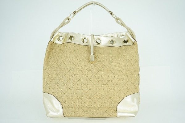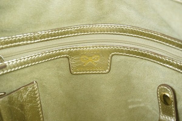 こちらのハンドバッグはアニヤハインドマーチのモチーフでもあるリボンが刺繍してあり可愛らしい、女性らしいデザインとなっております。