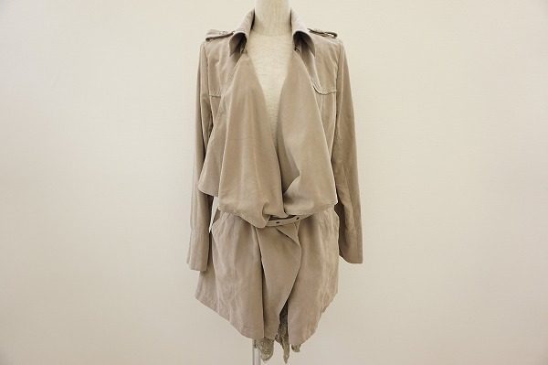 ゆるやかなドレープとレースが女性らしく印象的なアレキサンダーマックイーンのベージュコートを買取りいたしました