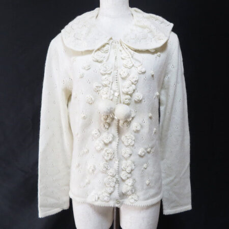 出張買取ご利用のお客様よりピンクハウスのカーディガンを買取しました。薔薇モチーフで可愛らしく仕上がっています。白1色なので飽きることなく楽しめるのが嬉しいですね。
