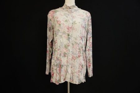今回買取させていただいたこちらのシースルーブラウスも、全体に色とりどりの花がデザインされており、中に着るインナーのお色でエレガントにもゴージャスにもコーディネートしていただける1枚です。女性の心をくすぐるロマンティックな世界観は、毎日のコーディネートに華を添えてくれますね。