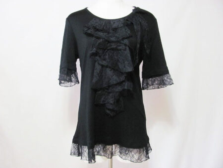 品よく広がるレースが大人レディに仕上げてくれるインゲボルグのTシャツ。気楽に着られるおしゃれ着として役に立ちそうなアイテムを出張買取ご利用のお客様より買取しました。黒なのでどこかクールな雰囲気も感じられます。カジュアルなジーンズから煌びやかなプリーツスカートまでいろいろなアイテムとのおしゃれが期待できるトップスです。