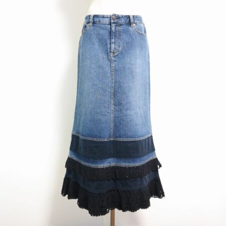 カジュアルなデニムにレースが綺麗にのった1枚。デニム素材と言うことも忘れそうなくらいしっとり決めていただけます。長めなのでスッキリも仕上がるのが嬉しいですね。