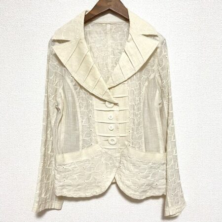イークラットのジャケットを買取しました。サイズは42です。不思議な雰囲気だけれどどこか唯一無二のカッコよさがあるジャケットです。素材も麻ですので適度に風を通し、涼しく着ていただけます。