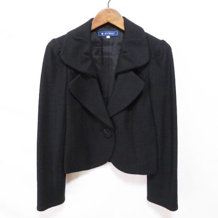 出張買取にてブラックのジャケットを買取しました。ブランドは人気のエムズグレイシーです。黒でかっちりしていますが、大きめの可愛らしい装飾で一味違う雰囲気を出しています。短め丈も合わせやすくていいですね。