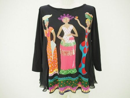 こちらのカットソーも、異国情緒のある3人の女性をカラフルな色彩プリントのユニークなアイテムです。
