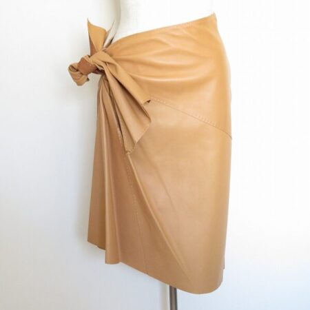 エルメスのレザースカートを出張買取ご利用のお客様より買取しました。キャメルの色合い、レザーの艶、変形デザインと全てが新鮮で綺麗さを出してくれるスカート。爽やかなシンプルシャツにも最高ですし、ニットなどボリューム感のあるお洋服にもマッチするのではないかと思います。