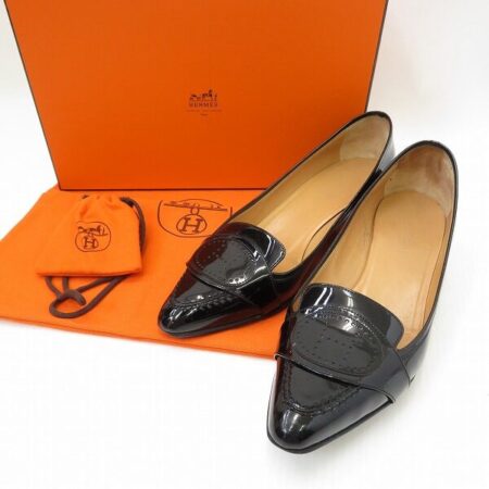出張買取でエルメスのローファーを買取しました。す。パテントレザーを使用しておりサイズは38です。Hのロゴもさりげなく美しいです。お仕事使いにはもちろんのこと、ジーンズと合わせても素敵ですね。