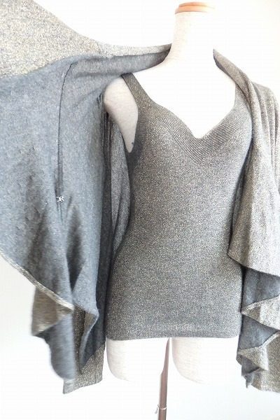 グレーのカシミア70%の、キャミソールとカーディガンのようなストールがセットになっています。
