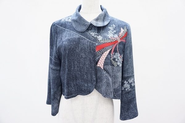 オリエンタルなムードと唯一無二のデザインが魅力の日本を代表するレディースファッションブランド、詩仙堂からフラワー柄と和柄のミックスが個性的なデニム素材のジャケットのご紹介です。