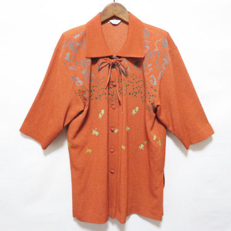出張買取にて三年坂のジャケットを買取しました。綺麗で鮮やかなオレンジに楽しませてもらえます。ボリューミーな雰囲気ですので1着着るだけで見事な存在感をアピール。マダムな印象も狙えますね。
