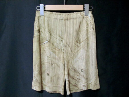 プリーツプリーズの総柄ショートパンツを出張買取ご利用のお客様より買取しました。プリーツプリーズのお洋服は上質な素材を使っているだけでなく、自宅での手入れが簡単なのも人気がある秘密です。爽快感溢れるショートパンツは、プリーツがあることでどこか上品になります。お外で長時間過ごされる方にもおすすめの1着です。