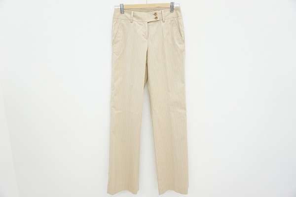 今回、こちらでご紹介させていただくのは、インコテックスのシンプルなパンツになります。淡い色合いのお色味なので、トップスも合わせやすく、オフィスなどにもピッタリです。