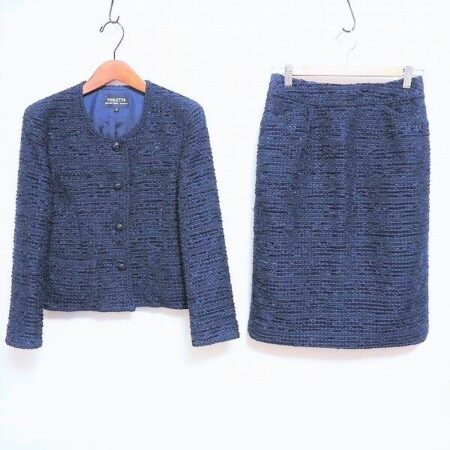 出張買取にてハナエモリのセットアップを買取しました。サイズは38です。定番のスカートスーツ。ただかっこいいだけではなく、上品で清潔感もあります。張り切り過ぎておれずスラっと着られるのも魅力です。