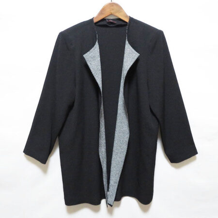 出張買取にて詩仙堂のコートを買取しました。コート特有の分厚さも感じられずさらっと軽く着られるのが嬉しいですね。明るい色味のお洋服を抑える時にも使っていただけます。黒と白のコントラストもいいですね。