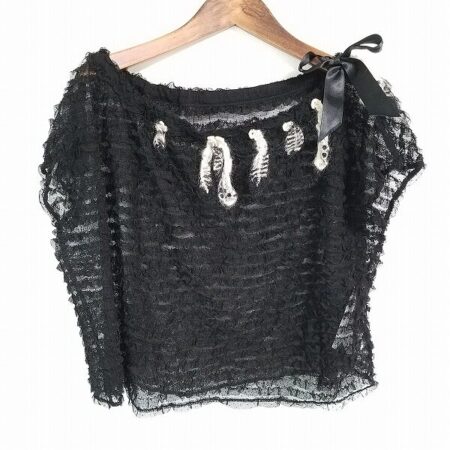 出張買取にてカネコイサオのカットソーを買取しました。丈が短い不思議なカットソー。シースルーでセクシーにそして可愛く決めていただけます。リボンのさりげない可愛さも後を引きますね。