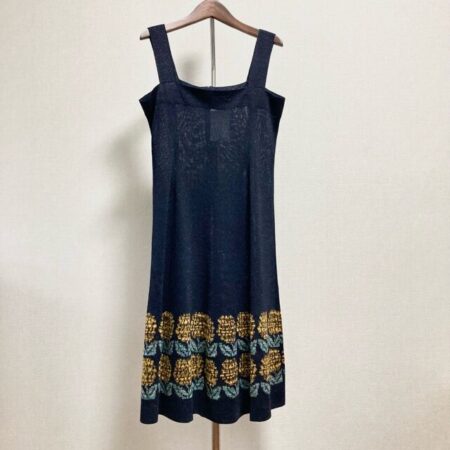 出張買取で斉藤都世子のキャミワンピースを買取しました。黒色の下の方にお花が咲き誇る1点。品の良さはありつつカジュアルに着ていただけます。