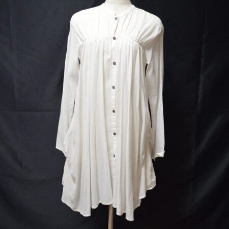 体型をより美しく見せてくれるデザインが素敵なチュニック。イオコムイオセンソユニコのお洋服を出張買取しました。白は膨張色ですがそう感じさせないスッキリ感があります。柄物ボトムスとも合わせていただいてもいいですね。