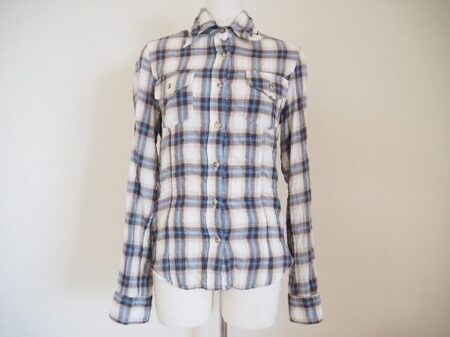 お客様よりアパルトモンのシャツを買取しました。ご自宅にいながらマイペースにご利用できる宅配買取をご利用いただきました。ラフすぎるとコーディネートが決まらないシャツ。ですが今回のシャツはどこか品も感じるシャツなのでスカートにも気軽にあわせていただけて品ある雰囲気にしてくれます。白が入っているのでさわやかさも演出できるアイテムです。