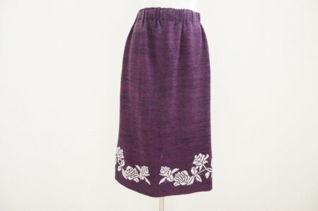 ちょっぴりダークな紫が大人の余裕を感じさせる斉藤都世子のスカート。当店自慢の出張買取ご利用のお客様より買取しました。裾にさりげなく咲くバラのモチーフが上品に仕上げてくれます。シンプルなシャツやジャケットに合わせていただくのもおすすめ。ブーツを履いて大人カジュアルを目指すのも素敵ですね。;