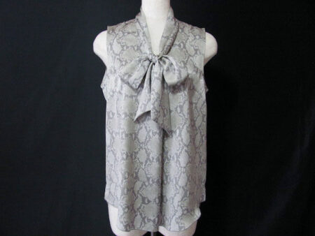 レジーナロマンティコのパイソン柄ブラウスを出張買取ご利用のお客様より買取しました。レジーナロマンティコのお洋服は自信が生まれ、喜びあふれる人生を歩むお手伝いをしてくれるような華やかなアイテムが勢ぞろい。ご紹介するパイソン柄のブラウスもシンプルでありながらクールで凛とした女性のかっこよさも作り上げてくれる1着です。ボトムスはデニムやロイヤルブルーのパンツなどがおすすめ。