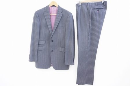 バーバリーブラックレーベルのスーツを出張買取にて買取しました。グレー×ストライプの組み合わせが新しく、さやわかな印象にしてくれるスーツです。クールな印象になりがちな黒とは違って、どこか柔らかさや親近感を感じられる好印象が狙えるスーツです。