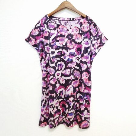 店頭預り買取にてシズカコムロのワンピースを買取しました。ピンク系の色味、はっきり強さを感じる柄がいいアクセントとなってくれるワンピース。暗めな色のジャケットの下に着ても存在感を発揮できます。