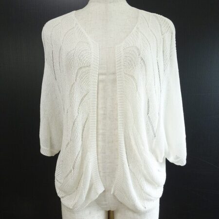 出張買取ご利用のお客様よりシズカコムロ 4298のカーディガンを買取しました。白の清潔感にプラスしてほどよい緩さも出していただける着やすい1点。ちょっと寒い時のお供にも最適です。