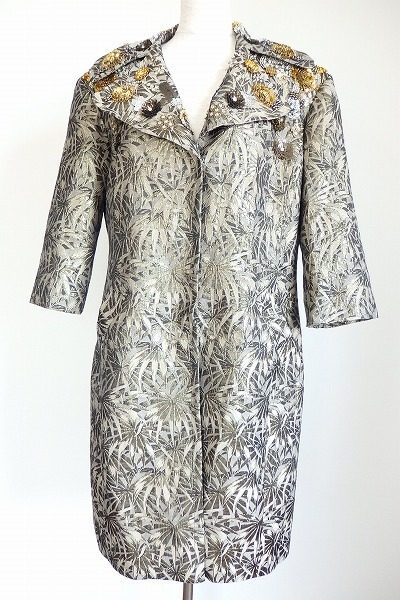 スパンコールとボタニカル柄をあしらったこのコートは、華やかでありながらけっして派手ではなく身につけた人の美しさを引き立たてるような一着です。